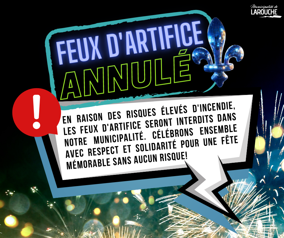 Aucun feu d’artifice ne sera autorisé sur le territoire de Larouche tout au long du week-end.