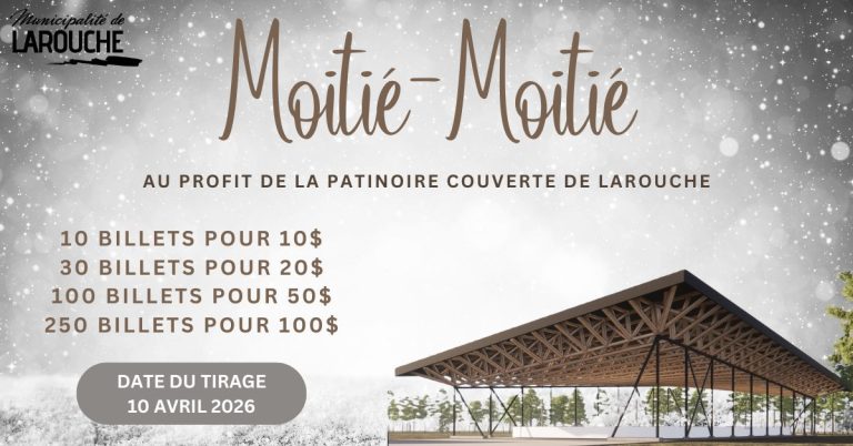 Le comité MADA-FPF de la Municipalité de Larouche vous propose un moitié-moitié afin de couvrir une partie du financement de la patinoire couverte multifonctionnelle.
