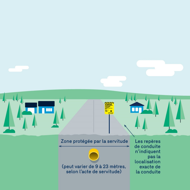 Ces conduites se situent majoritairement sur des terrains privés dans une zone protégée par une servitude pour permettre le passage, à pied ou en véhicule, des employés d’Énergir lors de travaux d’entretien ou en cas d’urgence. C’est notamment la raison pour laquelle celles-ci doivent être libres d’accès, et ce, en tout temps.