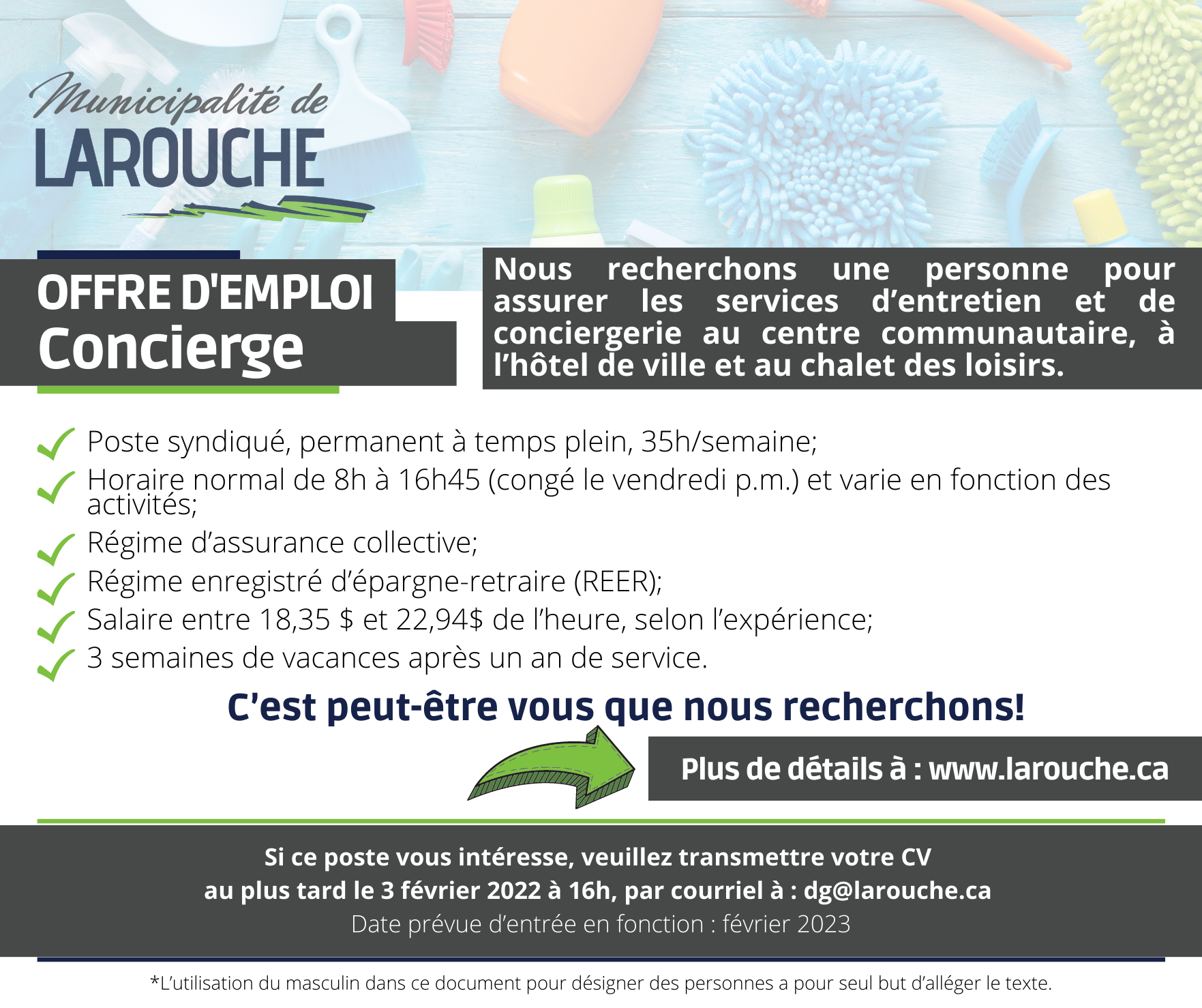 Nous recherchons la perle rare, au poste de concierge!