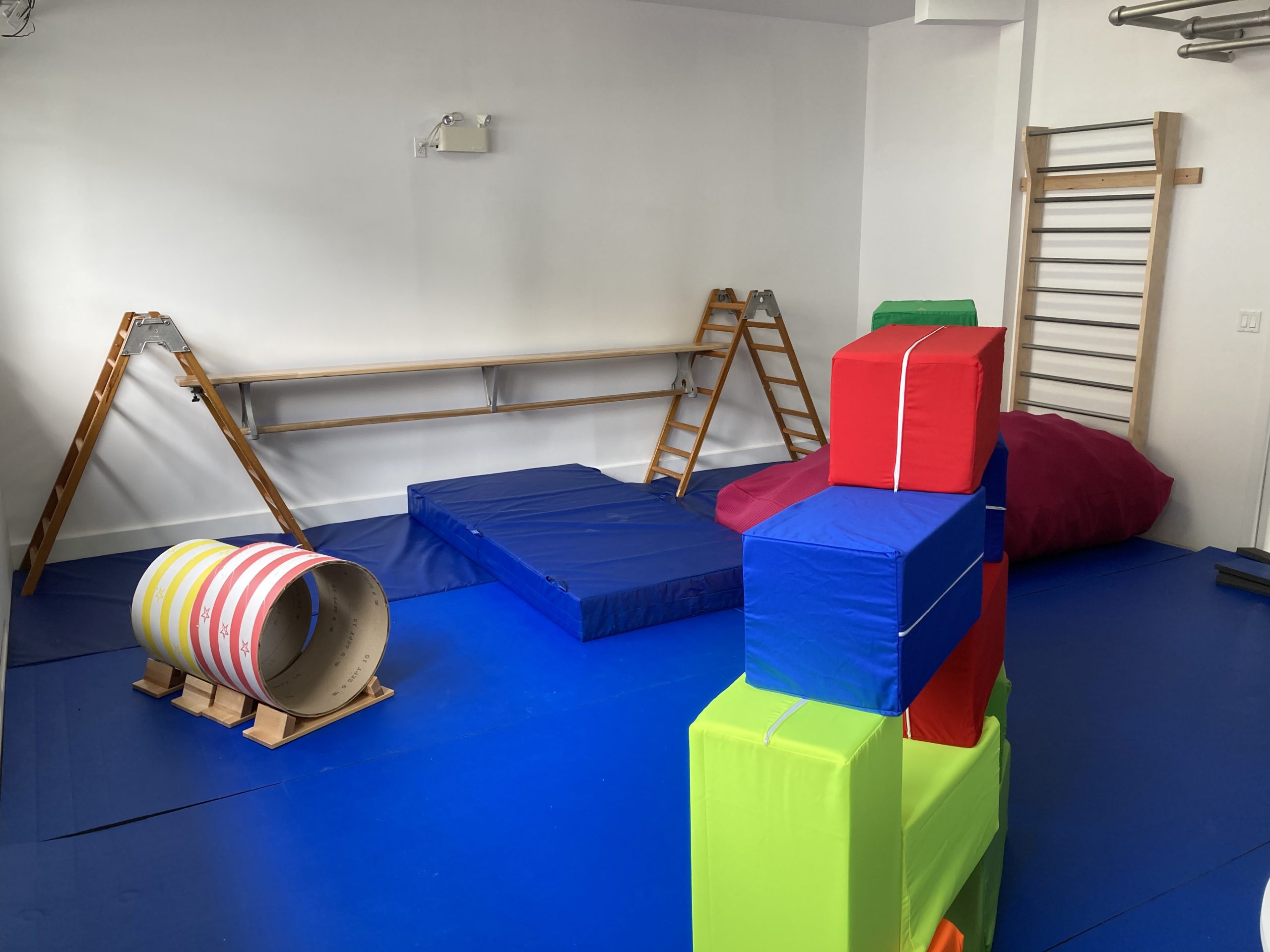 La salle de psychomotricité a pour but d’aider les enfants de 0 à 8 ans dans différents domaines de leur développement, autant au niveau physique, intellectuel, social et affectif. Durant les séances, les enfants sont en contexte de jeu et ils influent les uns sur les autres. Grâce à cette salle, les enfants pourront donc exercer leurs habilités psychomotrices en sautant, rampant, faisant des constructions, des jeux de rôle et en sociabilisant avec les autres enfants.