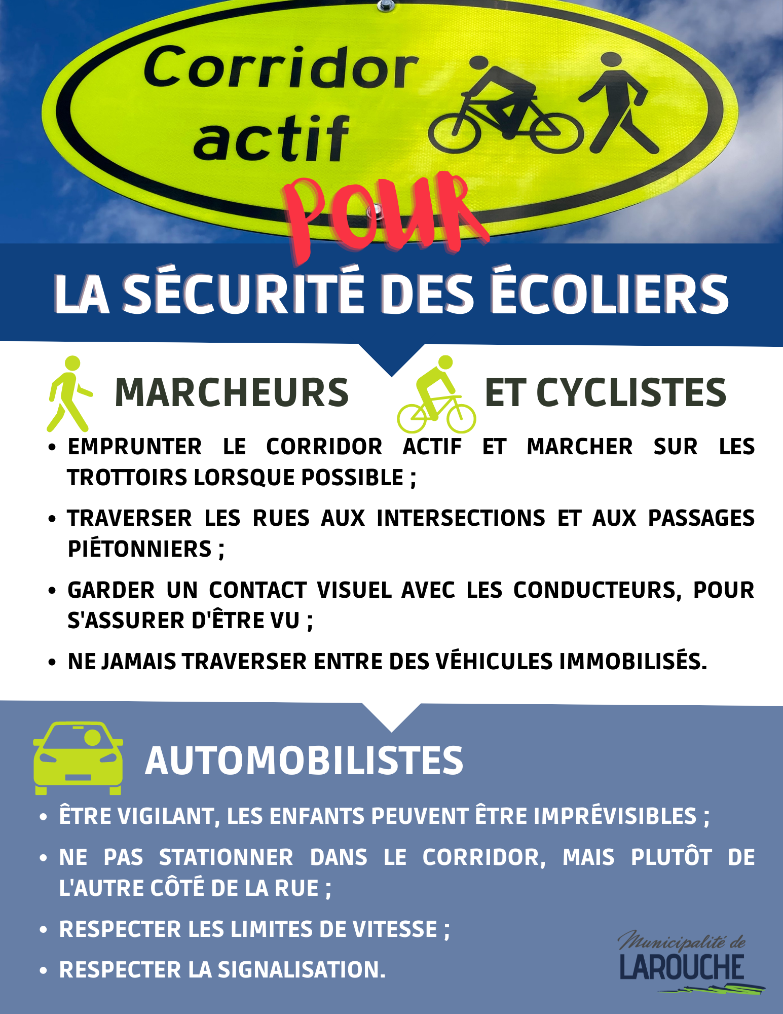 Un corridor actif a été aménagé dans la municipalité pour favoriser notamment la sécurité des écoliers, mais aussi des piétons et des cyclistes.